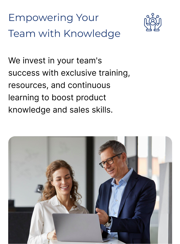 Our partnership isn’t just about technology - it’s about growth. Get access to exclusive business development tools, market insights, and customer engagement strategies that help you grow and succeed in a competitive market.